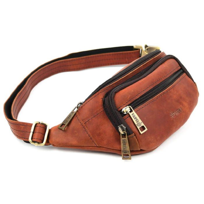Шкіряна бананка 7218 ТАРВА може носитися як на поясі, так і у форматі крос-боді (через плече, сумка нагрудна).