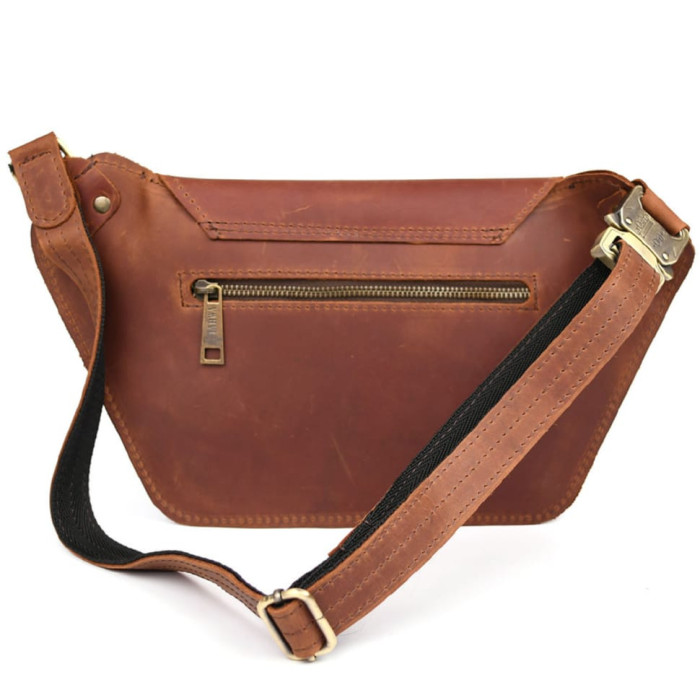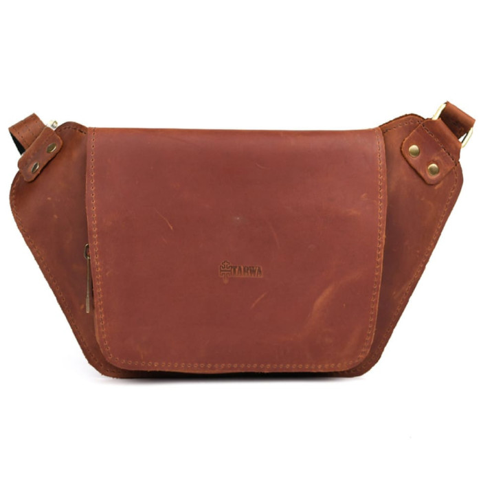 Шкіряна бананка напоясна матова коньячна шкіра RB-8127-3md TARWA. Ваші документи, гроші та телефони під рукою у будь-якій ситуації. Матова коньячна шкіра крейзі хорс та фурнітура кольору антик. Стильний широкий клапан на передній поверхні, тканинна підкладка усередині, тактичний швидкознімний фастекс.