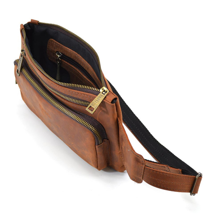 Завдяки пошиву зі щільної шкіри крейзі хорс бананка тримає форму навіть в повінстю пустому стані. Приймає форму тіла при носінні.