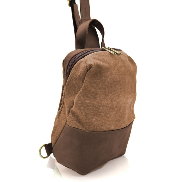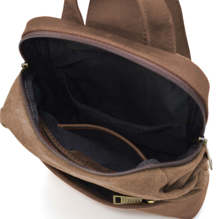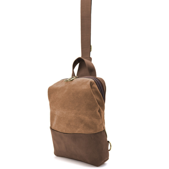 Рюкзак-слінг на одне плече зі шкіри та канвасу TARWA RCc-1905-3md - стильне та зручне рішення для тих, хто цінує практичність та модний дизайн, надаючи функціональність та комфорт у повсякденних ситуаціях.