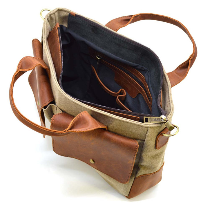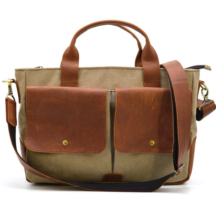 Чоловіча сумка з конвас та кінської шкіри TARWA RbSc-3990-3md коньяк - коньячна шкіра та канвас (парусину) кольору пісок.