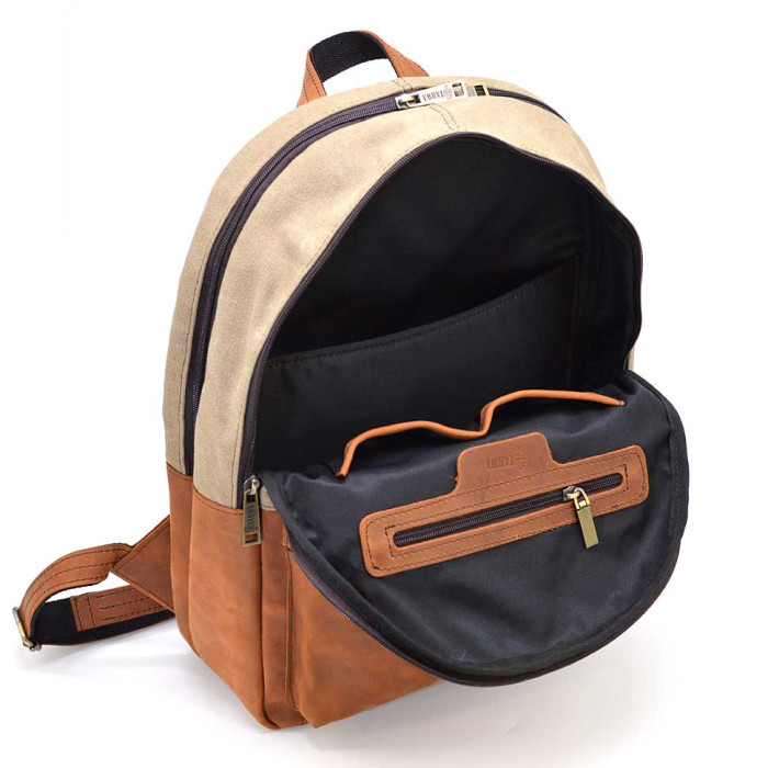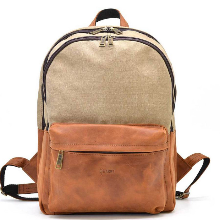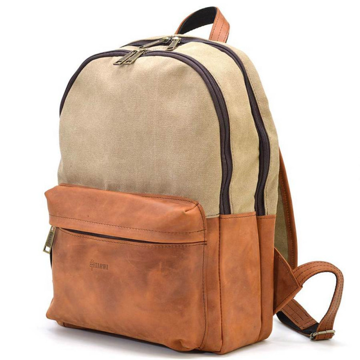 Чоловічий рюкзак шкіра та канвас TARWA RbSc-7273-3md на два відділення з вінтажної шкіри крейзі хорс. Два ізольованих відділення на блискавці. Комбіновані шлейки, передня кишеня, боковини. Розміри: 40×31×13 см. Український виробник TARWA. Універсальний рюкзак, який підходить для кожного дня, для поїздок, роботи, прогулянок. Достатньо місткий, має: