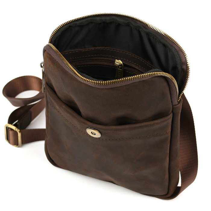 Шкіряна сумка через плече RC-0061-4lx TARWA коричневий крейзі хорс Крута вінтажна шкіра з пулл-ап ефектом (ефект старіння та подряпин) коричневогокольори.
