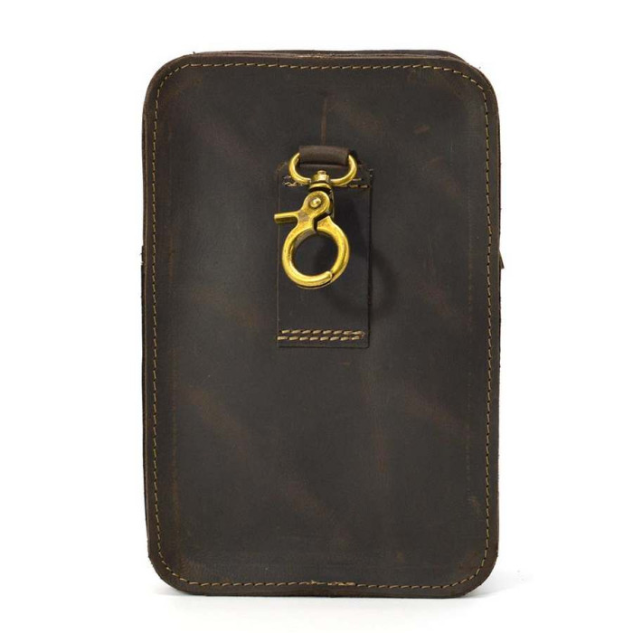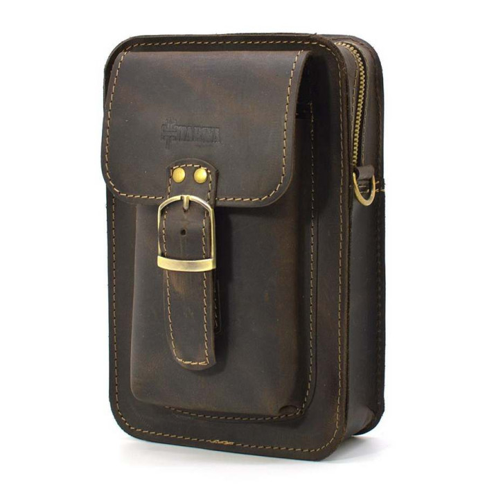 Сумка через плече, напоясна сумка TARWA RC-0076-3md зі шкіри Crazy Horse Шкіряна сумочка на пояс із товстої кінської шкіри. Буде потрібна для любителів носіння смартфона на поясі або на петлі джинс. Усередині шкіряне оздоблення.