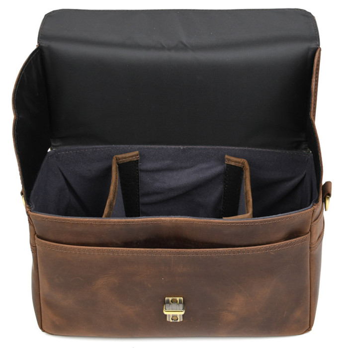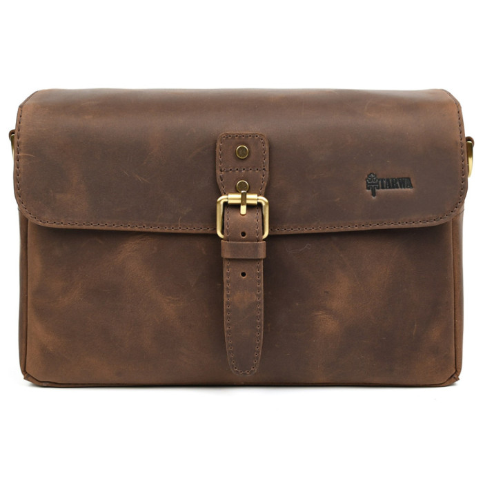 Фото сумка для камери шкіряна крейзі TARWA RC-1314-4lx - сумка середньо-великого розміру для фото або відео камери і одного або декількох об'єктивів та інших аксесуарів. Пошитий повністю з натуральної шкіри крейзі хорс. Закривається клапаном із захисними краями від опадів на портфельний замок на передній стінці.