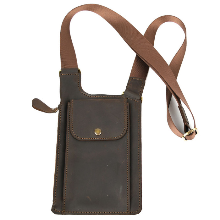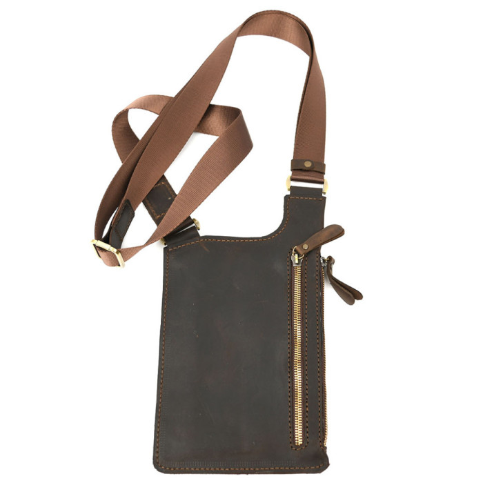 Кінська шкіра (crazy horse) - груба, матова, товста шкіра, що тримає форму на невеликих та середніх виробах. Має вінтажний ефект (ефект стареної шкіри), що нагадує наявність подряпин та потертостей - це не є дефектом. Перший час використання може залишати сліди на світлому одязі, що не є браком та швидко минає, "затираючись". Характеристики