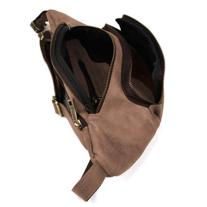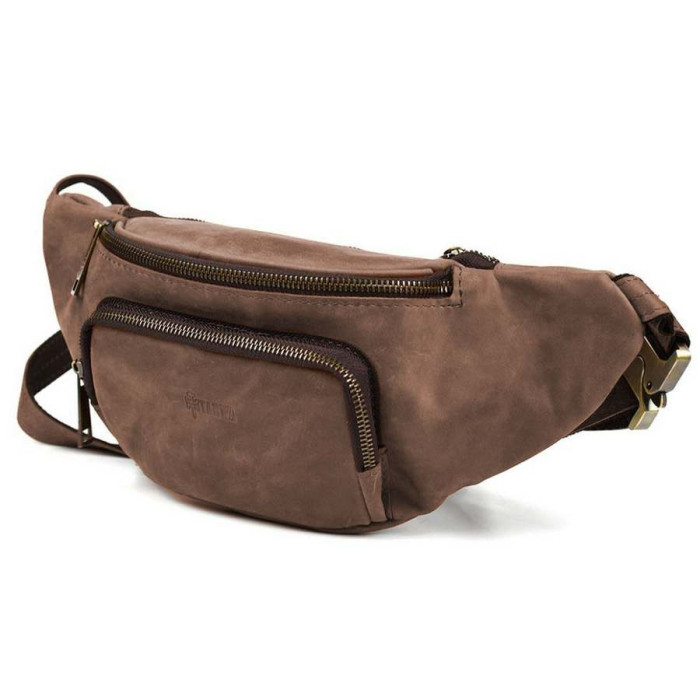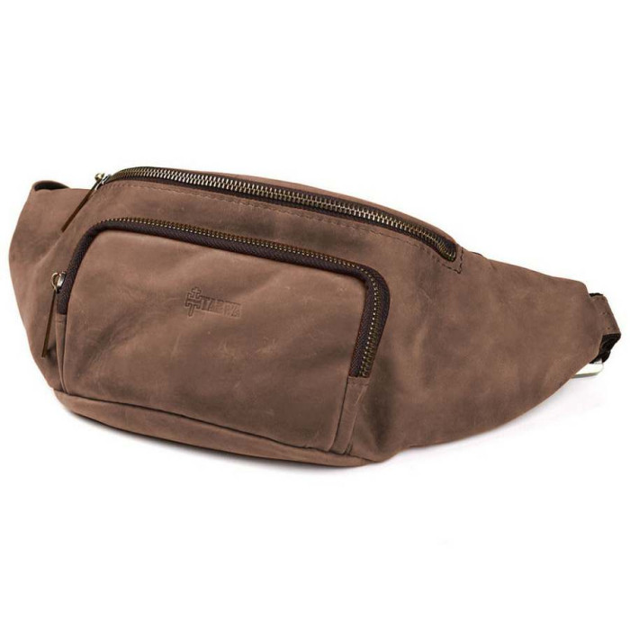 Сумка на пояс TARWA RC-3079-4lx – темно-коричнева середня сумка-бананка з натуральної шкіри на застібці-блискавці від відомого вітчизняного виробника TARWA. Вона стане ідеальним супутником для сучасного чоловіка, який цінує комфорт і функціональність.