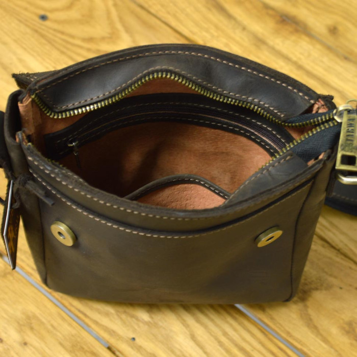 Сумка закривається на клапан, що фіксується магнітними кнопками. У сумки під клапаном одне основне відділення на блискавці та відкрита кишеня під клапаном, кишеня на блискавці на тильній стороні сумки. Дві внутрішні кишені зі шкіри - одна відкрита, друга потайною на блискавці. Шкіряний ремінь комбінований шкіра + стропа. Замість класичної текстильної підкладки всередині сумка продубльована шкіряною підкладкою. Завдяки шкіряній внутрішній підкладці сумка на плече TARWA RC-4118-4sa буде служити довго і буде менш схильною до зносу. Металева фурнітура - практичний та довговічний вибір для сумки. Всередині відкрита шкіряна кишеня.