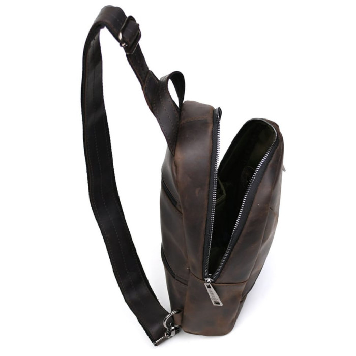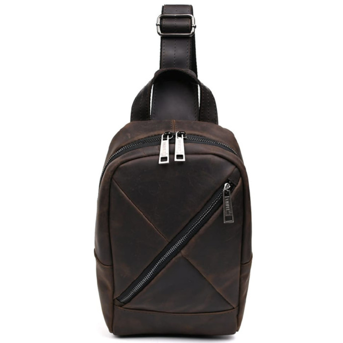 Чоловічий слінг шкіряний рюкзак ТАРВА 6020 виготовлений з кінської шкіри коричневого кольору.