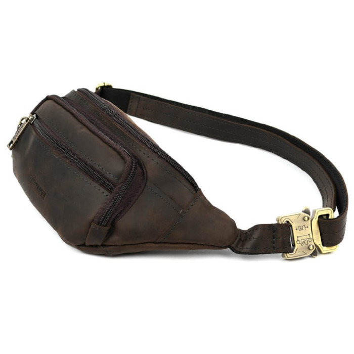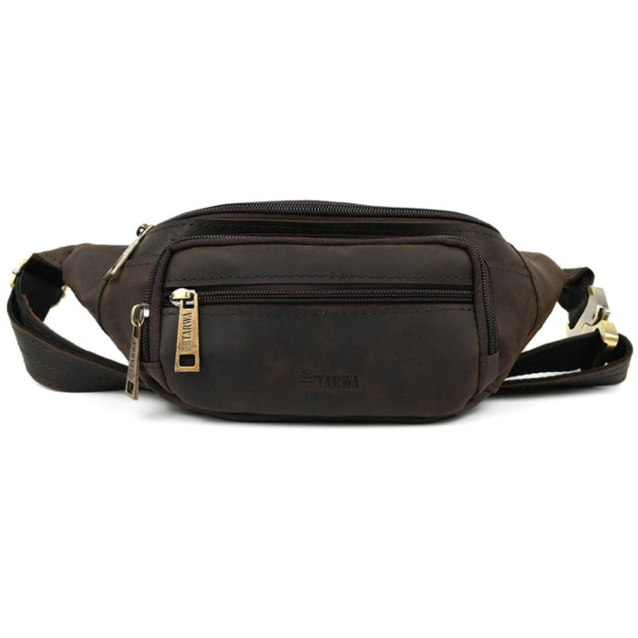 Бананка шкіряна, сумка напоясна коричневий крейзі хорс TARWA RJ-7218-3md Сумка має два великі основ..