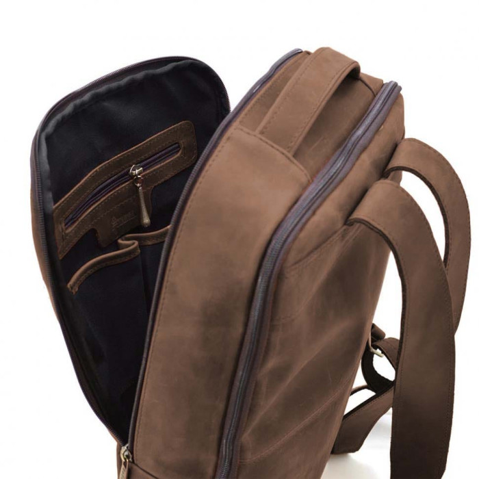 Вироблений в УКРАЇНІ шкіряний чоловічий коричневий рюкзак TARWA RC-7287-3md Crazy Horse є втіленням стилю та майстерності.