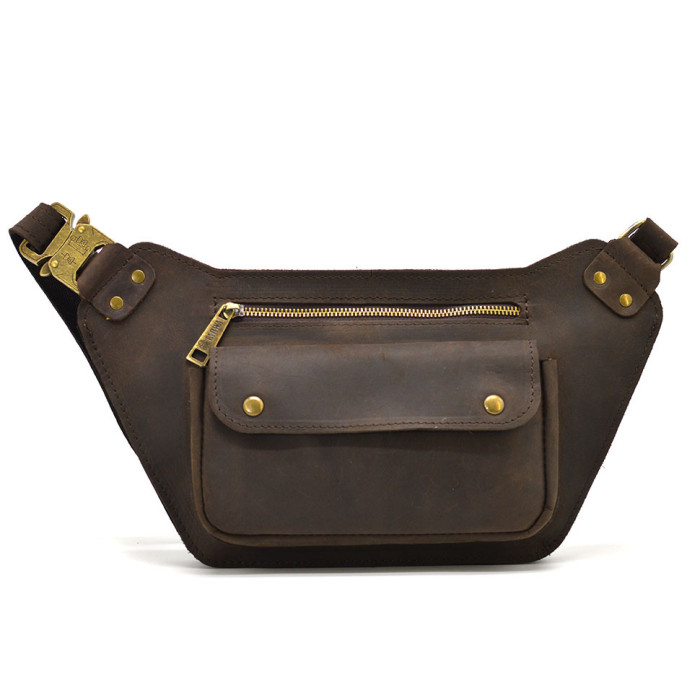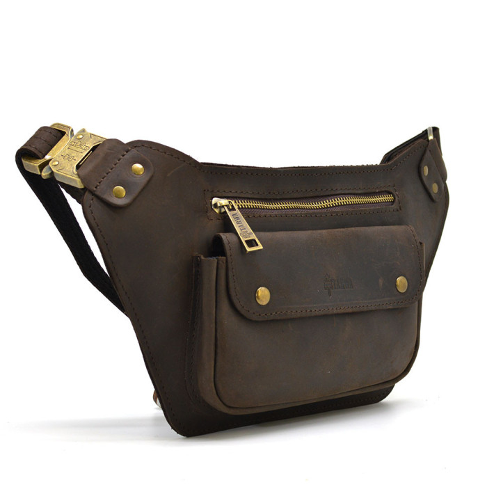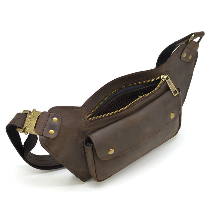 Шкіряна бананка напоясна коричнева кінська шкіра RC-8133-3md TARWA. Ваші документи, гроші та телефони під рукою у будь-якій ситуації. Застібка фастекс, швидкознімний, металевий. Стильний широкий клапан на передній кишені з двома кнопками "акуле око", тканинна підкладка всередині. Передній та задній відділ для речей.