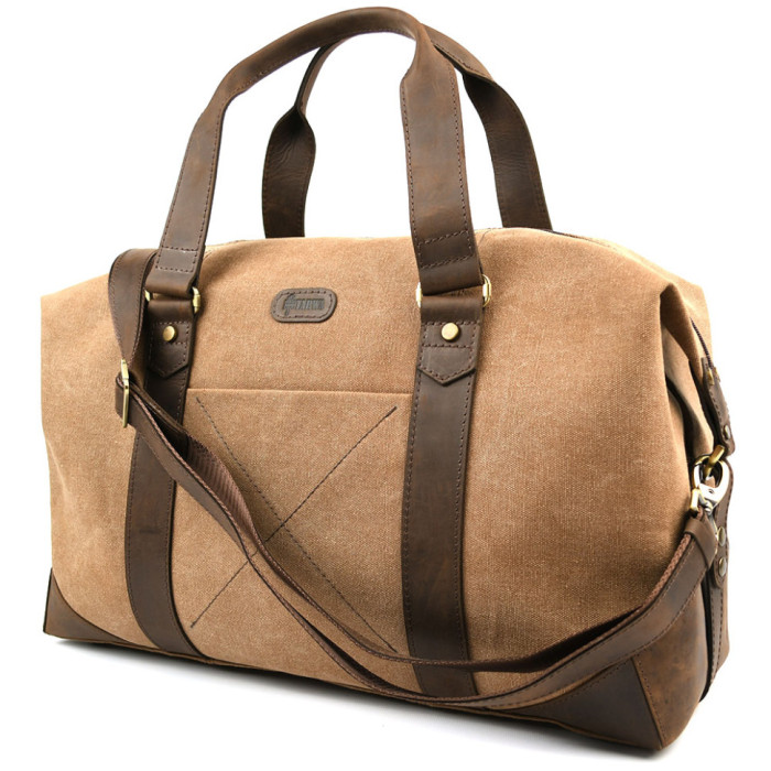 Дорожная спортивная сумка TARWA RCs-0320-4lx из песочного канвас и кожи крейзи хорс Съемный наплечн..