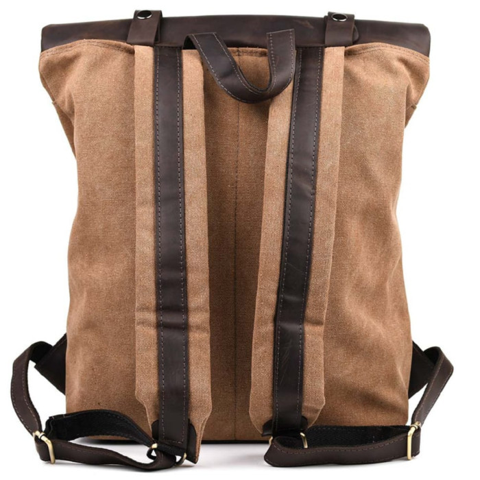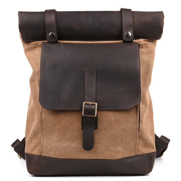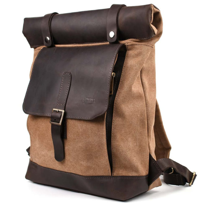 Рол-ап рюкзак зі шкіри та кавовий канвас TARWA RCc-5191-3md