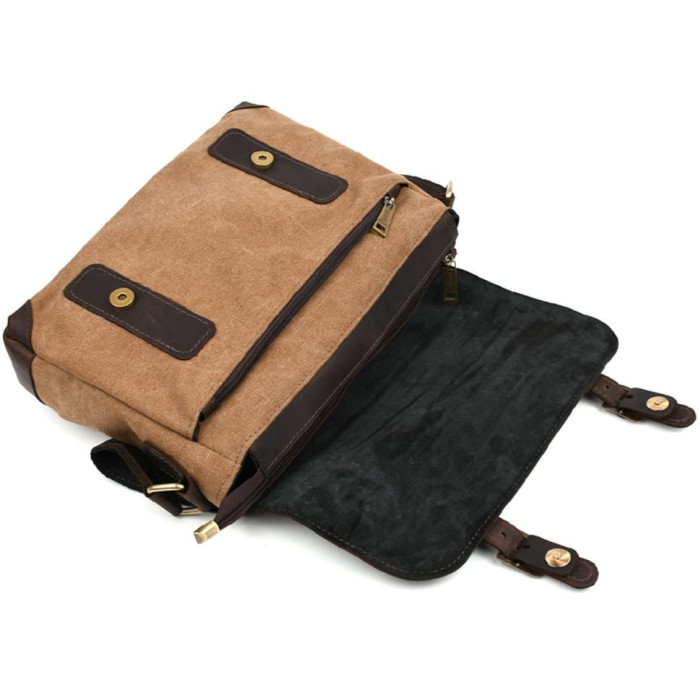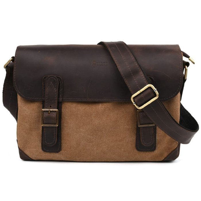 Чоловіча сумка через плече зі шкіри та тканини канвас (холщівка, парусину), виробник – український бренд TARWA.