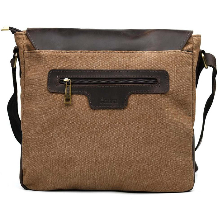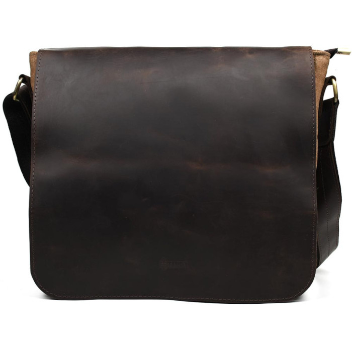 Кути денця сумки через плече RGc-6601-3md TARWA укріплені шкірою. На шкіряному клапані, який застібається на магнітну кнопку і прикрашений хлястиком, є гравіювання з логотипом бренду. У комплектацію входить знімний плечовий ремінь.