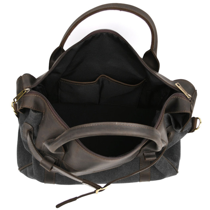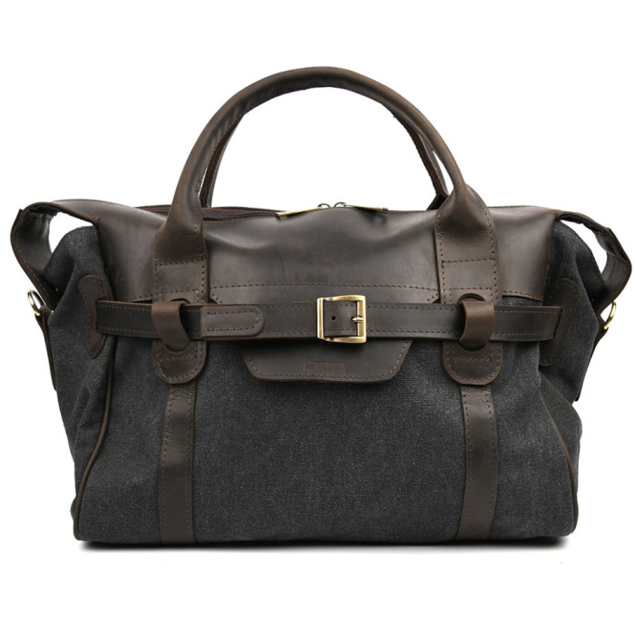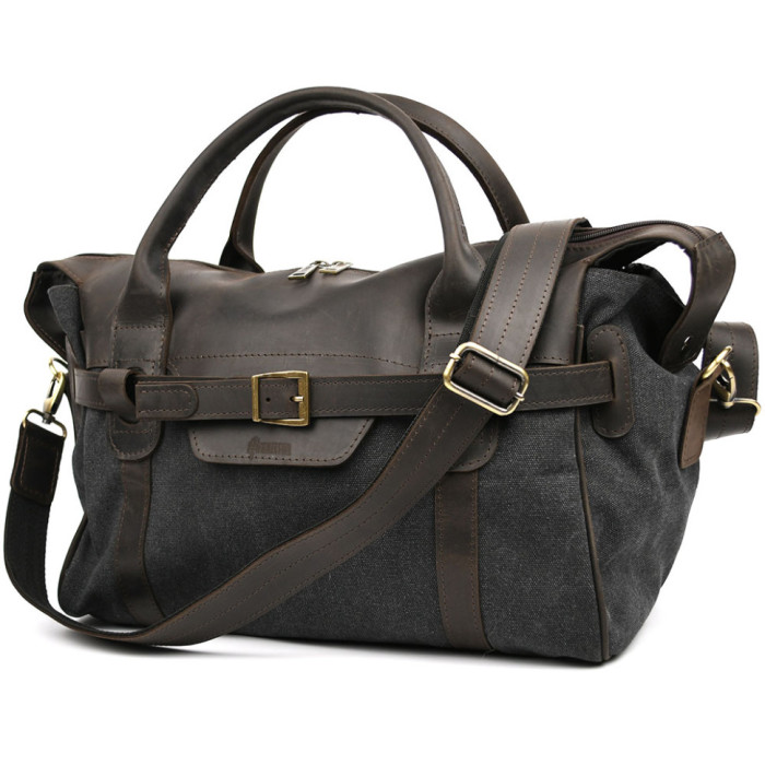 Універсальна сумка RCg-7079-3md виконана з комбінації натуральної шкіри та текстилю Canvas, що суттєво впливає на вагу виробу. Призначається для подорожей, відряджень та занять спортом. Завдяки своїм габаритам (40х30х22) підходить для ручної поклажі. Виріб виконаний з м'якої якісної шкіри та текстилю Canvas, з використанням металевої фурнітури та текстильної підкладки усередині. Укріплене дно сумки оснащене маленькими металевими ніжками для запобігання подряпинам шкіри виробу. Має одне велике відділення, в якому є дві накладні відкриті кишені для телефону та портмоне, а також ще врізна велика кишеня, що застібається на блискавку, для цінних речей. аксесуар наділений двома короткими ручками для носіння в руці, але і знімний плечовий ремінь також присутній в комплекті. Обидві зовнішні сторони прикрашає декоративний шкіряний ремінець з пряжкою.
