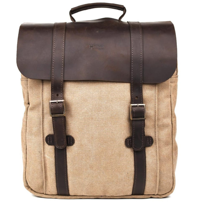 Канвас рюкзак із шкіряною ручкою 3420 - протягується через клапан назовні. Стильний рюкзак з парусини для ноутбука, для документів і речей.