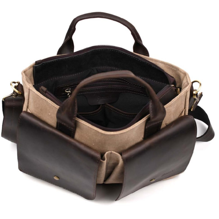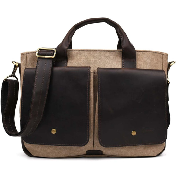 Чоловіча сумка з канвас та кінської шкіри TARWA RCs-3990-3md пісочна