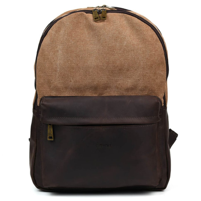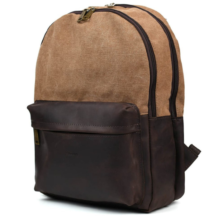 Рюкзак з кінської шкіри та канвасу коричневий TARWA RCС-7273-3md Два відділення на блискавці. Комбіновані шлейки, передня кишеня, боковини. Розміри: 40×31×13 см. Український виробник TARWA. Універсальний рюкзак, який підходить для кожного дня, для поїздок, роботи, прогулянок. Достатньо місткий рюкзак для ноутбука або міський рюкзак складається з: