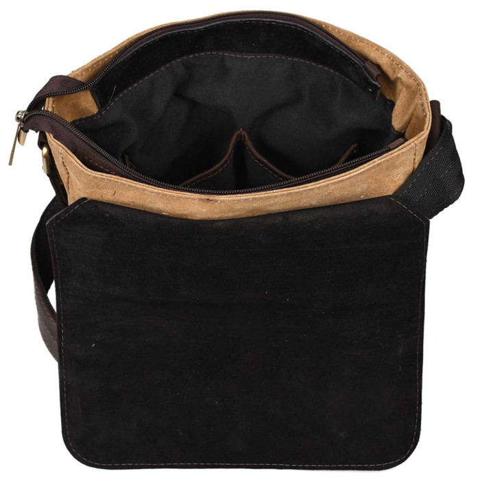 - основне відділення під клапаном на блискавці зі шкіряними бортами