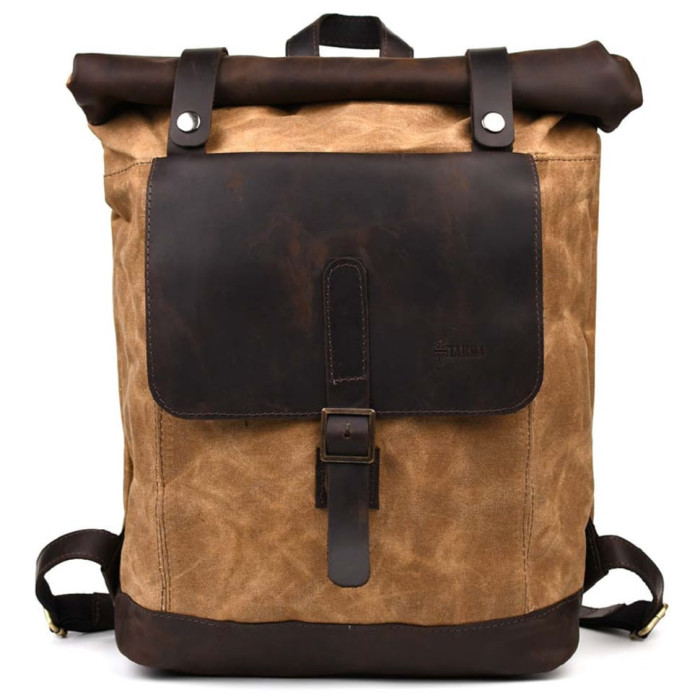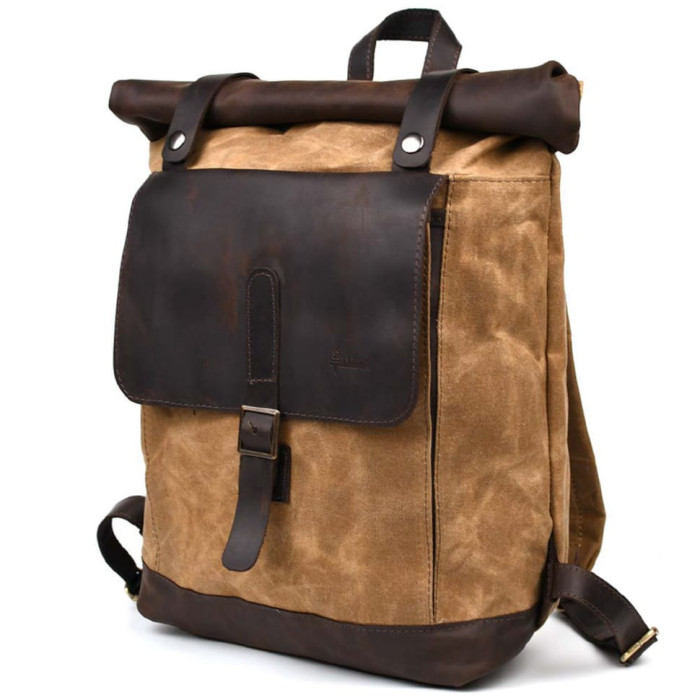Рюкзак з кінської шкіри та вощеного канвасу рол-ап TARWA RCw-5191-3md зовні: