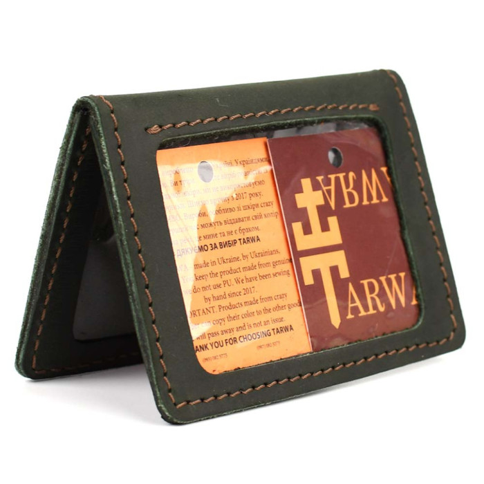 Обкладинка шкіряна для посвідчення, ID паспорта, прав TARWA RE-0114-4sa зелений Із натуральної кінської шкіри зеленого кольору, матова фактура. Розмір 7*10*1см.