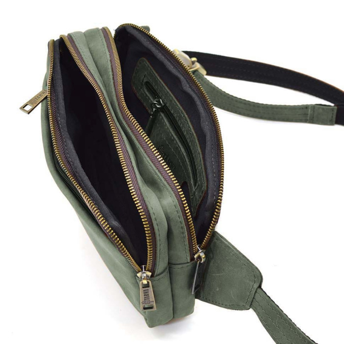 Напоясна сумка на два відділення TARWA RE-0704-3md зелена стане ідеальним рішенням для чоловіків, які воліють компактно зберігати свої особисті речі.
