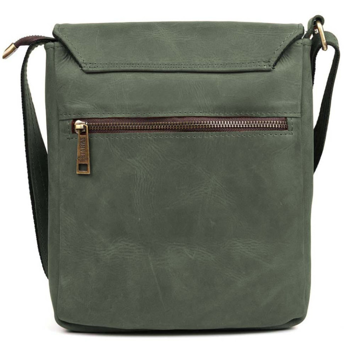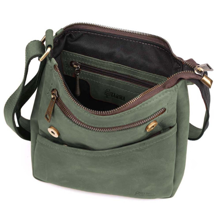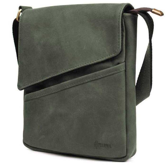 Чоловічі шкіряні сумки через плече RE-1302-3md TARWA зелеаня крейзі хорс Сумка-месенджер підходить для носіння планшета, а також документів формату А5 та особистих речей. Сумка виготовлена із натуральної кінської шкіри.