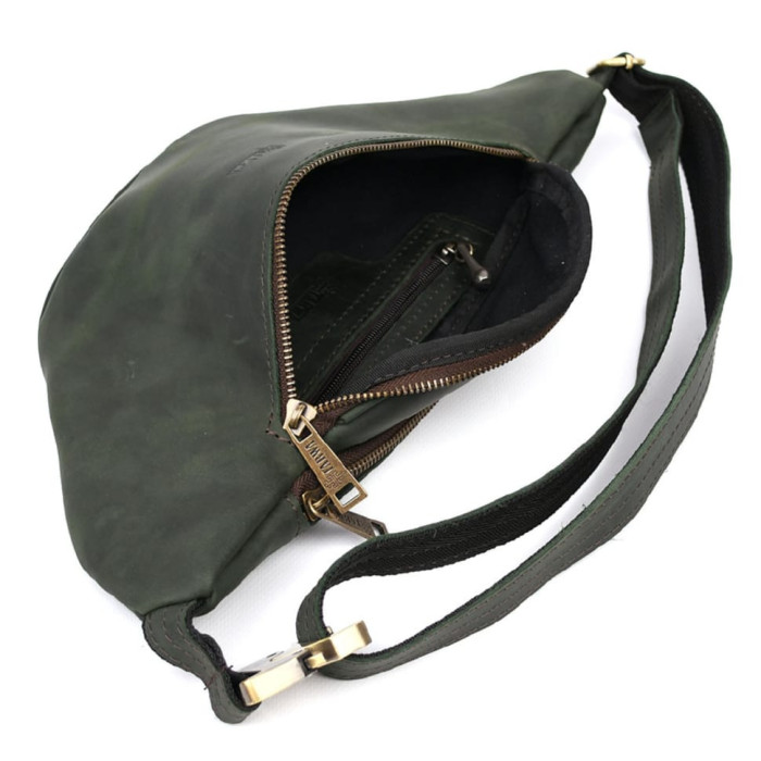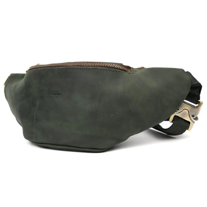 Презентуємо стильну сумку напоясну від бренду TARWA в матовій зеленій (модний колір 2020 року) натуральній шкірі крейзі хорс.