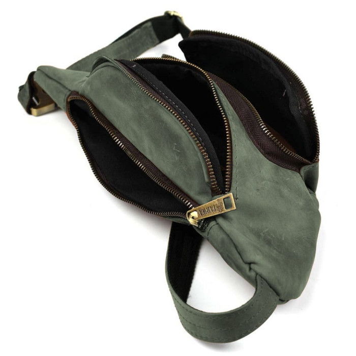 Сумка на пояс TARWA RB-3079-4lx виконана в спокійному темно-зеленому відтінку, що не часто зустрічається серед аксесуарів. Цей колір забезпечує нейтральний, але в той же час виразний зовнішній вигляд, що робить сумку-бананку TARWA RB-3079-4lx стильним та універсальним аксесуаром для різних сценаріїв використання, відмінно підходить для маскування з оточенням, таким як трава, ґрунт та рослинність.