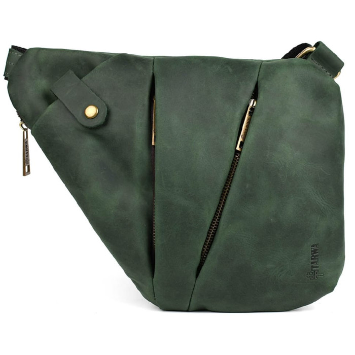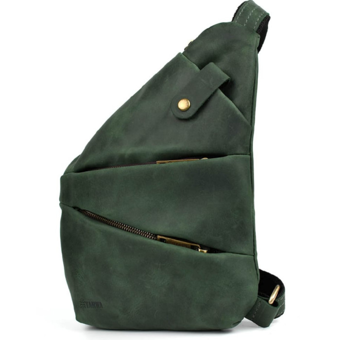 Сумка має одне містке відділення із блискавкою. Лицьову сторону прикрашають дві горизонтальні кишені з блискавками, також зверху є маленька кишенька з магнітною кнопкою. Усередині тканинна підкладка і одна кишенька. Дану модель можна позиціонувати як міні-рюкзак на одне плече. Моно-шлейка виготовлена зі шкіри з текстильною основою, з регулюванням по довжині. Металева фурнітура.