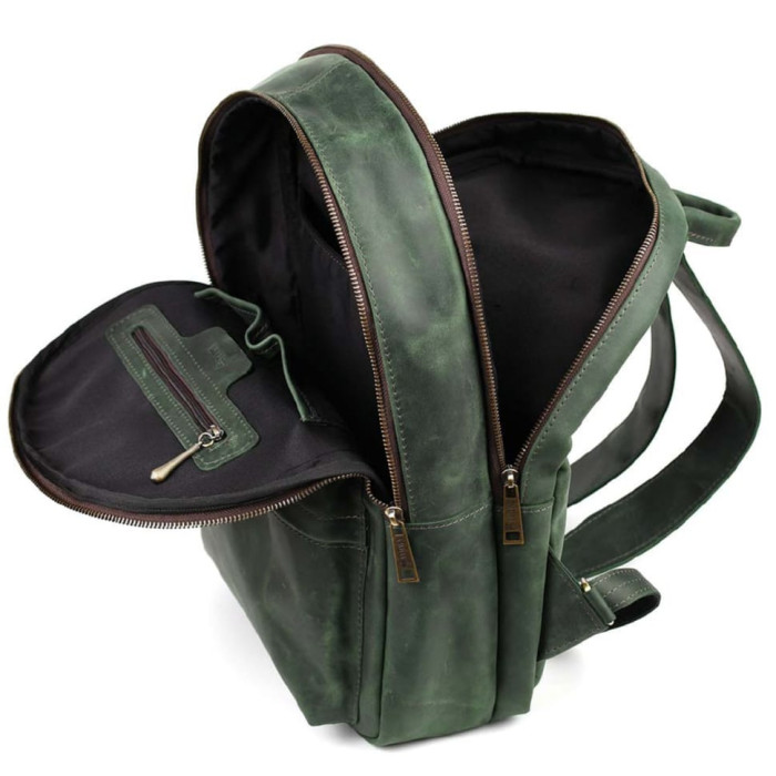 Чоловічий шкіряний рюкзак TARWA RE-7273-3md зелений крейзі хорс Шкіряний стильний рюкзак, українського бренду TARWA. Підходить як для поїздок, так і для використання на кожен день. Аксесуар дуже місткий та зручний у використанні: