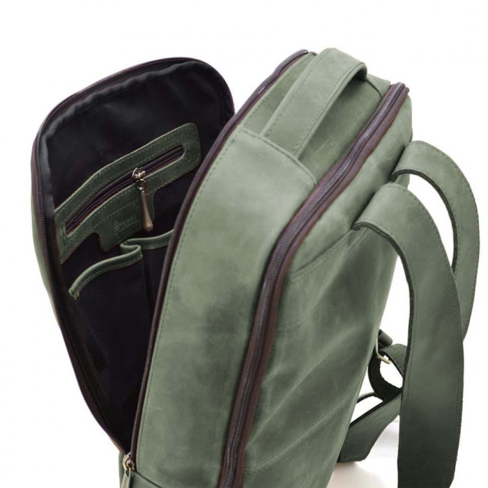 Шкіряний чоловічий рюкзак зелений TARWA RE-7287-3md Crazy Horse це стильний, місткий та зручний чоловічий рюкзак, що привертає увагу прекрасним малахітовим кольором та модним дизайном.
