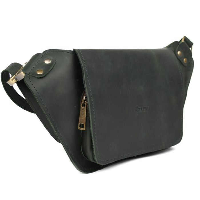 Шкіряна бананка напоясна зелена матова шкіра RE-8127-3md TARWA. Ваші документи, гроші та телефони під рукою у будь-якій ситуації. Матова зелена шкіра крейзі хорс та фурнітура кольору антик. Стильний широкий клапан на передній поверхні, тканинна підкладка усередині, тактичний швидкознімний фастекс.