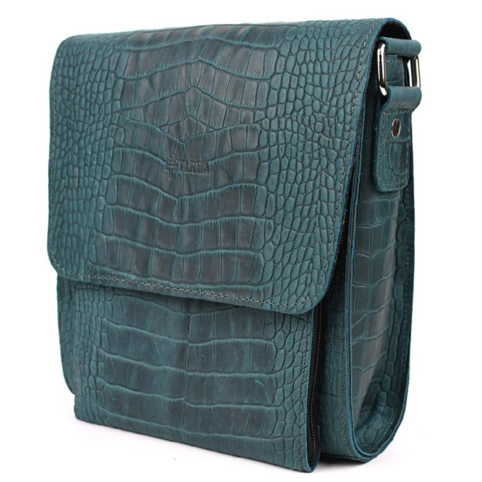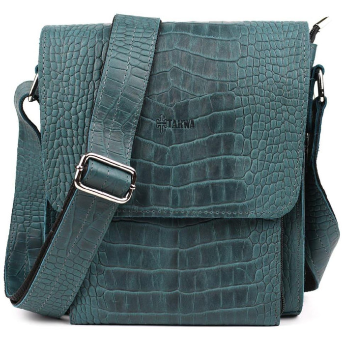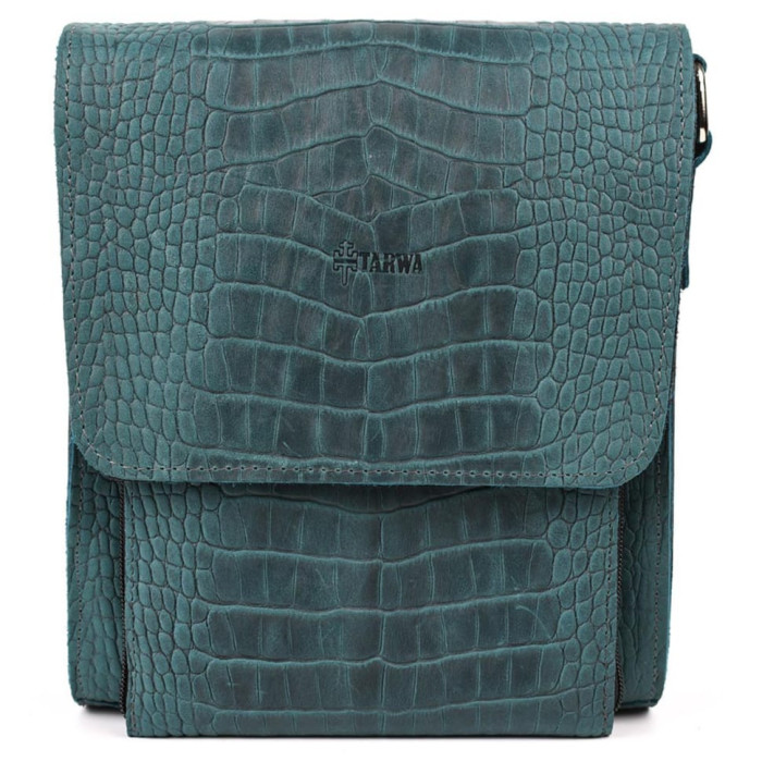 Leather shoulder bag RepK-3027-4lx brand TARWA blue reptile colorCool vintage leather with pull-up effect (aging and scratches effect) blue color with reptile embossing.