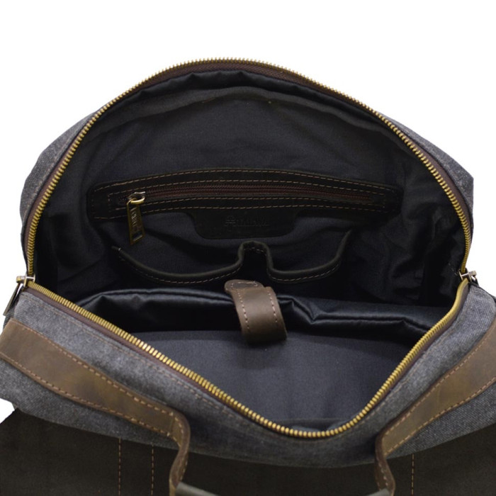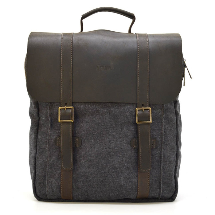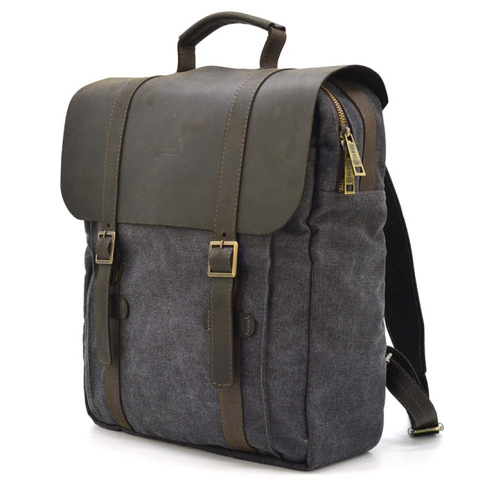 Канвас рюкзак із шкіряною ручкою 3420 - протягується через клапан назовні. Стильний рюкзак з парусини для ноутбука, для документів і речей.