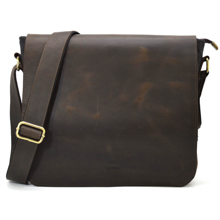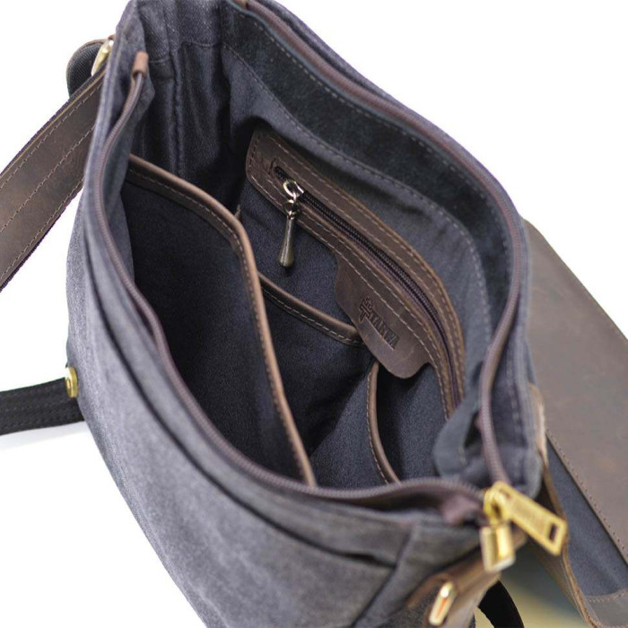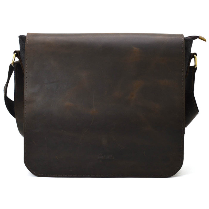 Зручний варіант для роботи, навчання чи поїздок. Вміщує формат А4. Виріб на відділення з внутрішнім ущільненим відсіком на липучці для планшета або документів. Усередині є дві відкриті невеликі кишені для телефону та портмоне, ще містка кишеня на блискавці для цінних предметів. На задній стороні сумки розташовуються дві величезні плоскі кишені: одна на блискавці, і друга на магнітній кнопці. А також під клапаном ще є велика відкрита кишеня. Месенджер застібається на блискавку і зверху накривається шкіряним клапаном із магнітами.