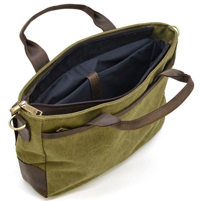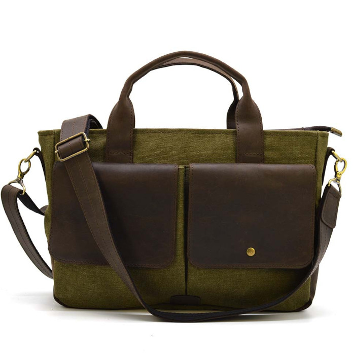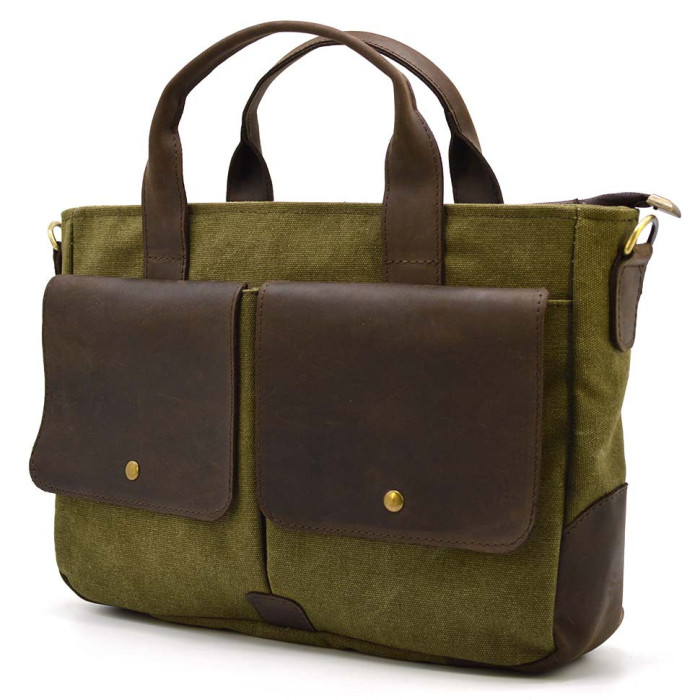 Чоловіча сумка з канвас та кінської шкіри TARWA RHc-3990-3md хаккі канвас (парусина) та коричнева кінська шкіра