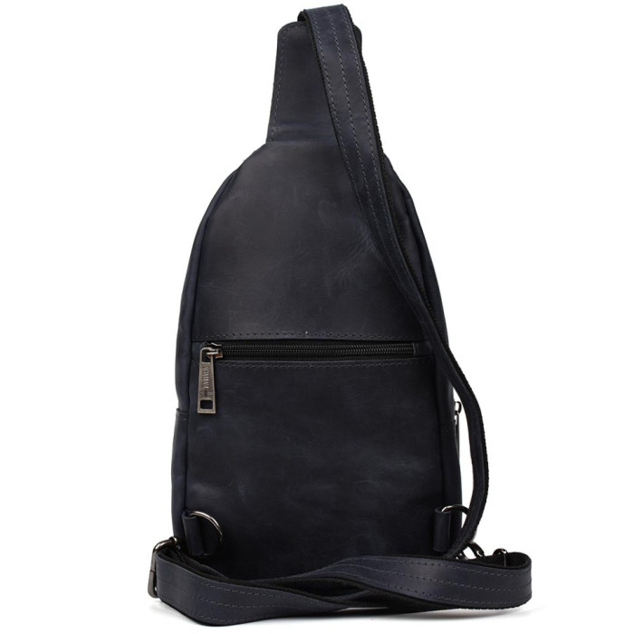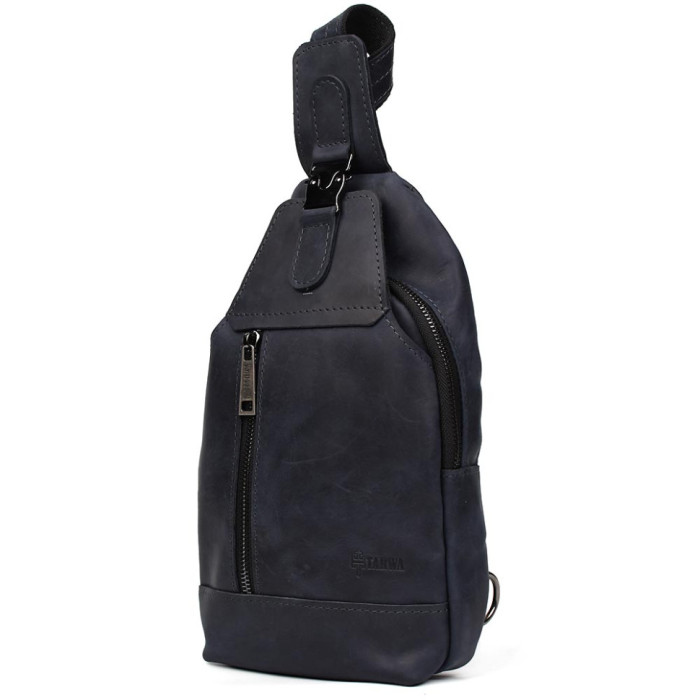 Чоловічий рюкзак слінг шкіряний TARWA RK-0116-3md Чоловічий рюкзак слінг шкіряний TARWA RK-0116-3md - зручний слінг на одну шлейку на ліве або праве плече. Одне основне велике відділення на блискавці та друге відділення дещо менше під клапаном із фастексом. Передня вертикальна кишеня на блискавці, кишеня на блискавці на тильній стороні горизонтальна.