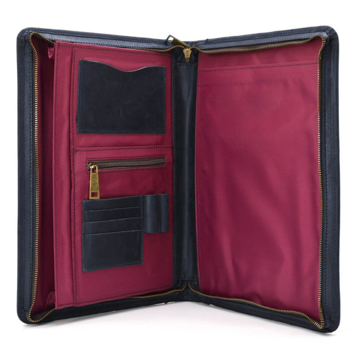 Шкіряна папка для ділових документів А4+, органайзер TARWA RK-1294-4lx синя шкіра crazy horse