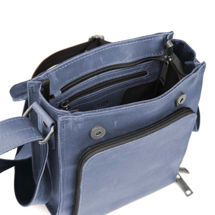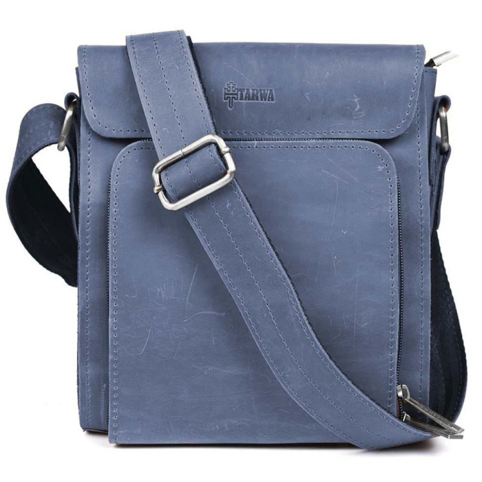 Чоловіча шкіряна сумка через плече RK-30272-3md TARWA синя являє собою елегантний аксесуар, що втілює стиль і практичність. Це функціональна та містка чоловіча сумка з безліччю додаткових кишень та осередків.