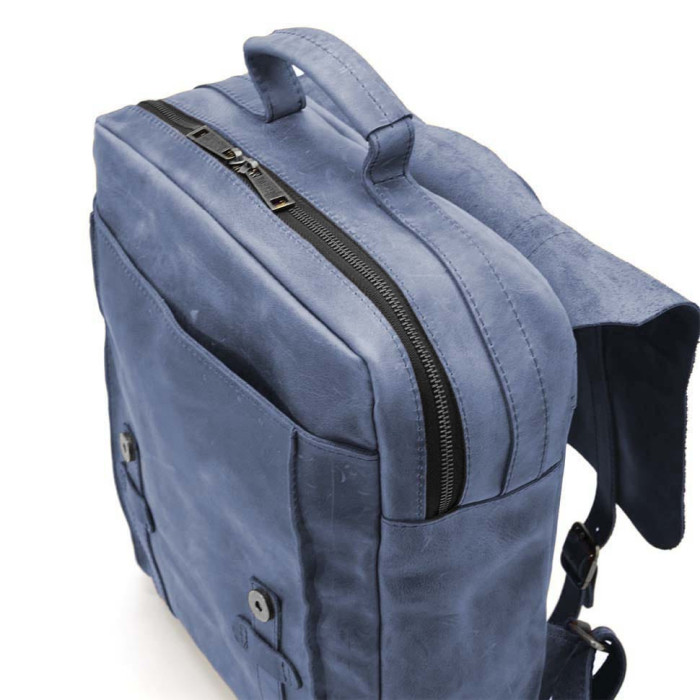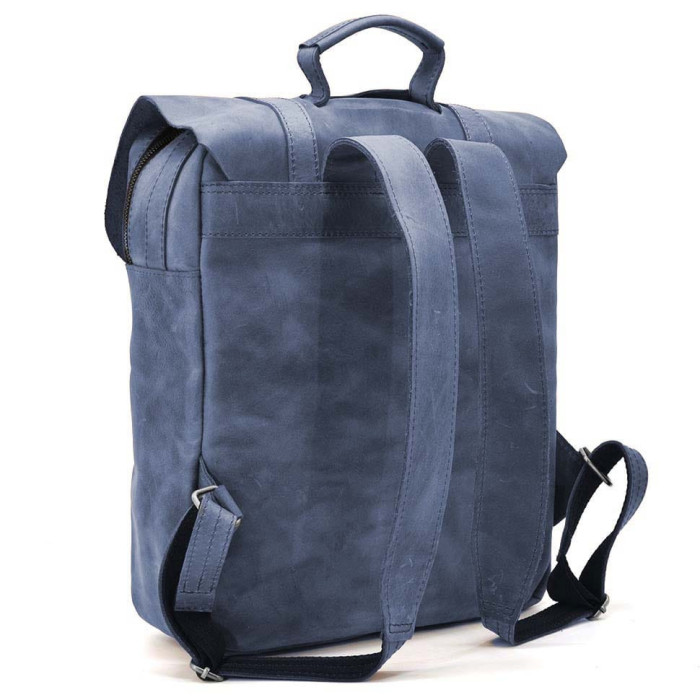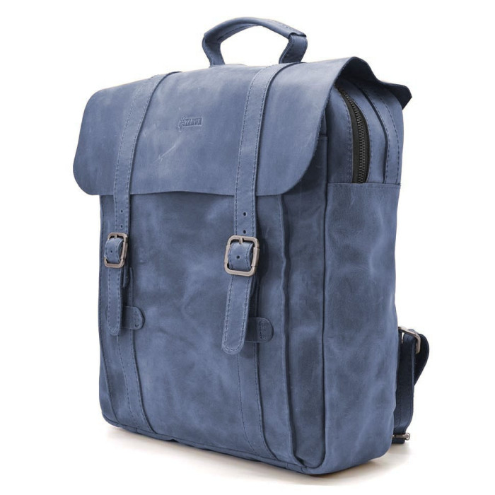 Сумка рюкзак для ноутбука з кінської шкіри TARWA RK-3420-3md синя Закривається на шкіряний клапан фальш-пряжках - магнітах. Одне відділення на блискавці та передня кишеня відкрита на магніті під клапаном