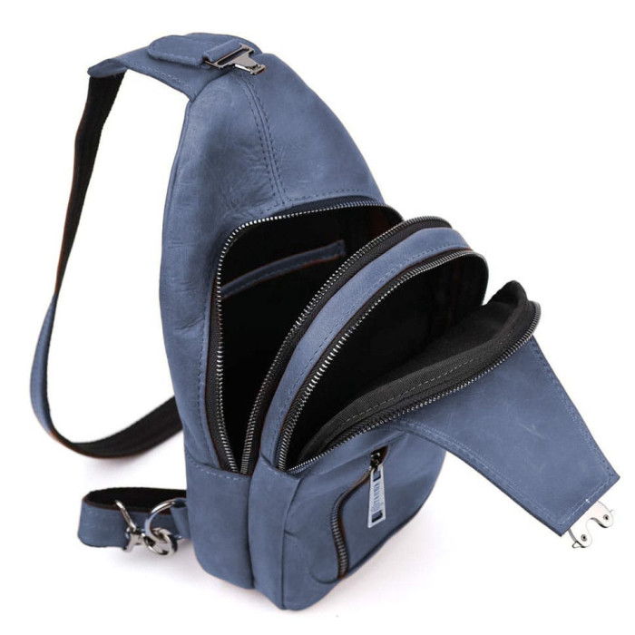 Чоловічий рюкзак слінг із кінської шкіри TARWA RК-4004-3md синій-аксесуар must have, який знаходиться в одному кліку від вас.