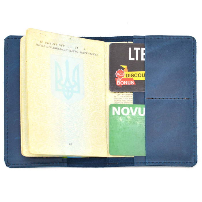 Шкіряна обкладинка на паспорт, військовий квиток TARWA RK-passp синя.