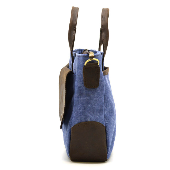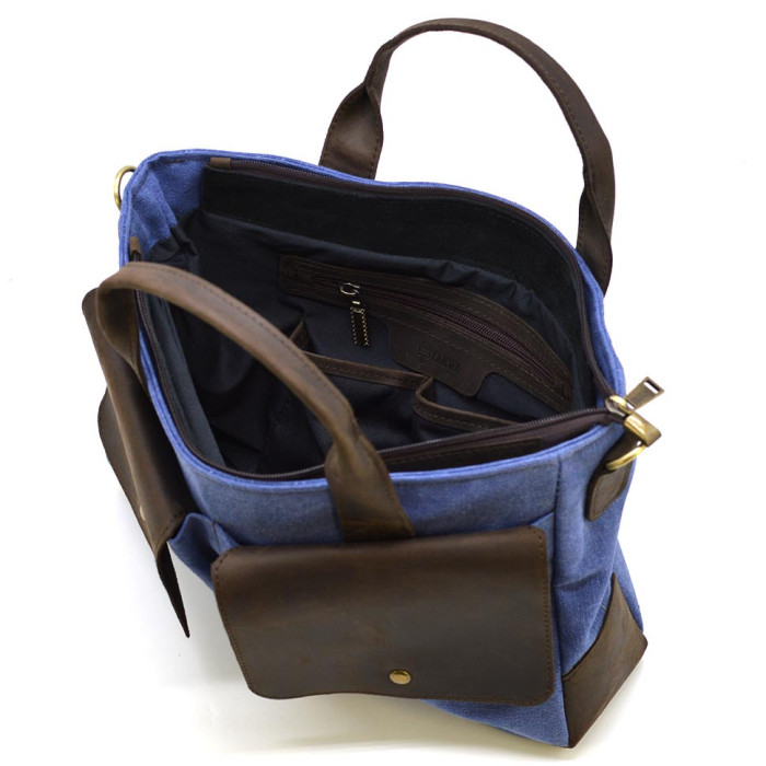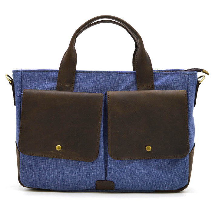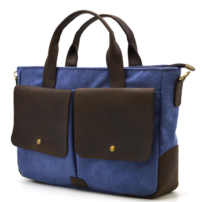 Чоловіча сумка з канвас та кінської шкіри TARWA RKc-3990-3md синій канвас та коричнева кінська шкіра