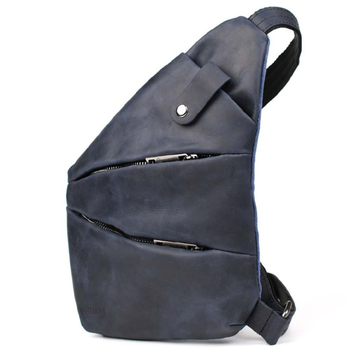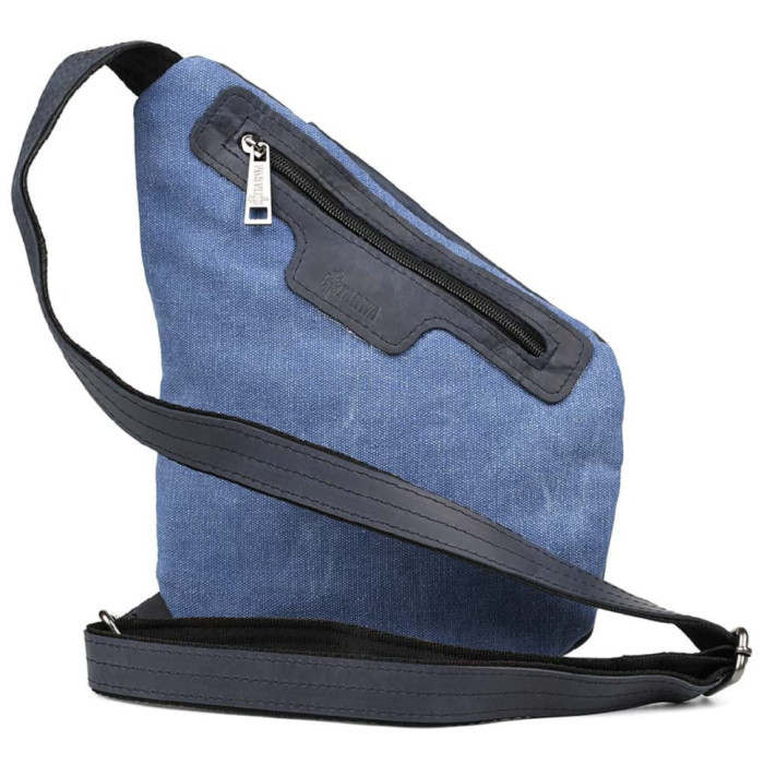 Чоловіча сумка-слінг через плече із поєднання канвасу та натуральної шкіри від українського бренду Tarwa. Задня частина сумки повністю тканинна, а лицьова сторона та ремінь навпаки вся зі шкіри. Виріб відрізняється оригінальним дизайном та максимальною функціональністю при носінні. Буде корисна у поїздках та подорожах. Складається з одного місткого відділення, що застібається на блискавку. На лицьовій стороні сумки розташовані дві горизонтальні кишені, що закриваються на блискавці, також зверху є маленька кишенька з хлястиком на кнопці. Ремінь (шлейка) двокомпонентний - складається зі шкіри та текстильної стропи для надання міцності та довговічності виробу. Ремінь регулюється за довжиною. Вся фурнітура та блискавки металеві.