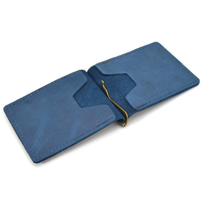 Шкіряний затискач для грошей ручної роботи аквамарин RKsky-hold-001 TARWA. Аксесуар виготовлений із натуральної шкіри Crazy horse, ручної роботи. У даній моделі затиску TARWA всередині є гачок-затискач для купюр та 4 відділення для карток. Розмір затиску дозволяє легко поміститися в кишеню. Розмір 11,5 см на 8 см.