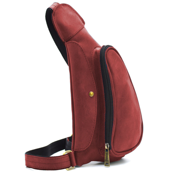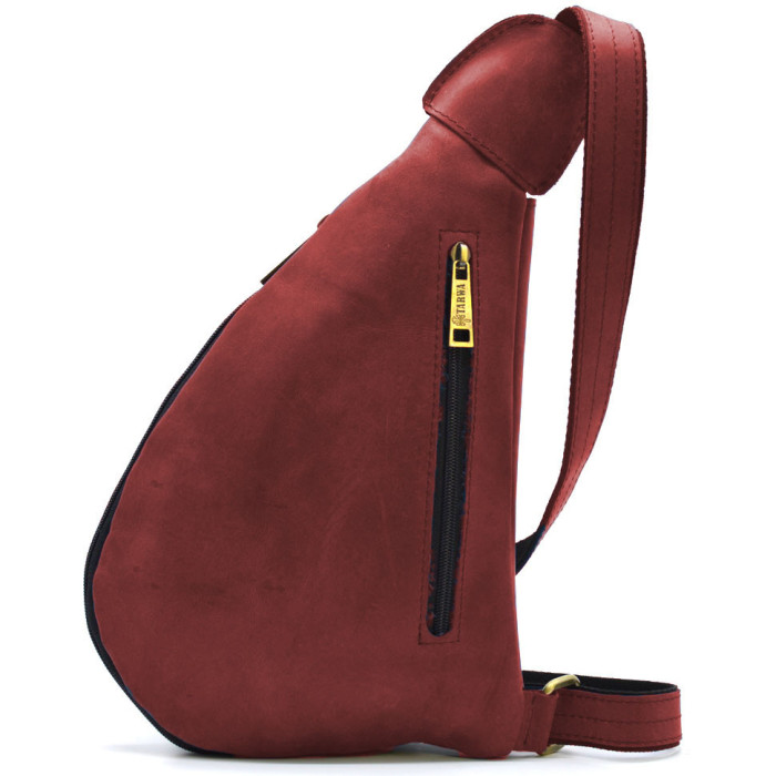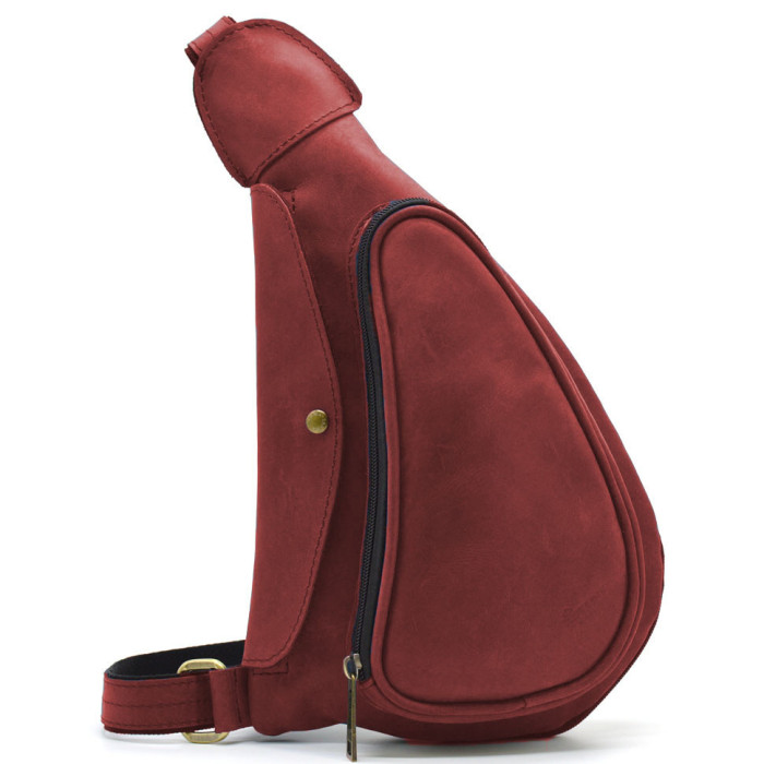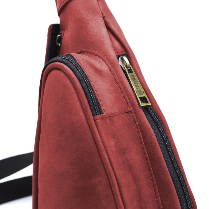 Нагрудна сумка рюкзак слінг шкіряна на одне плече RE-3026-3md TARWA. Рюкзак може приховано носитись під теплим або об'ємним одягом. Відмінна риса цього рюкзака - це його вигнута, ергономічна форма, дизайн, що дозволяє комфортно використовувати рюкзак, для носіння під правою рукою на грудній клітці (контроль вмісту, приховане носіння).