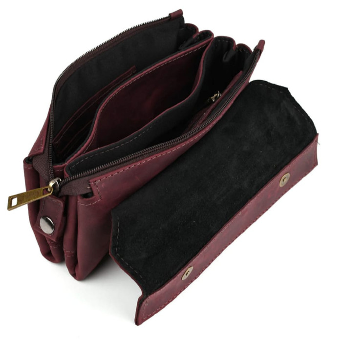 Носити цю сумку зручно за допомогою шкіряної ручки на задній стороні виробу. Це додасть штрих стилю до повсякденного образу.